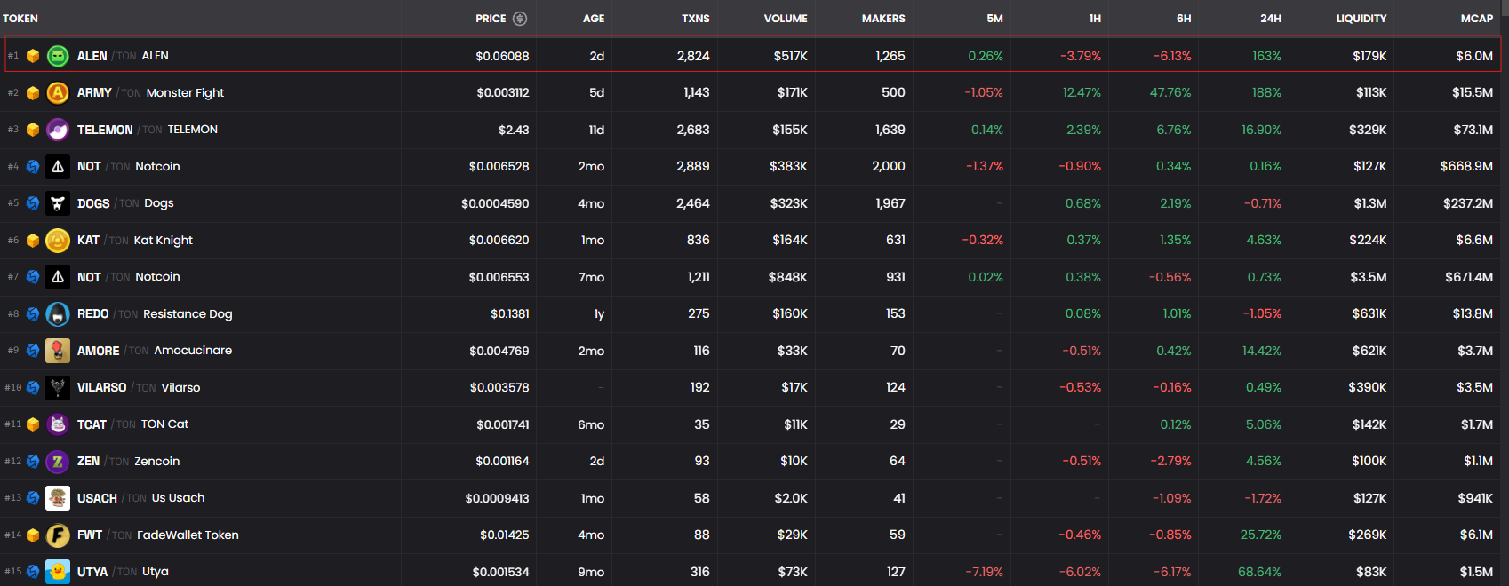 아직 오픈하기도 전인 에일리언 마인이지만 높은 기대감으로 Dex Screener의 화제성 1등을 차지한 모습입니다!